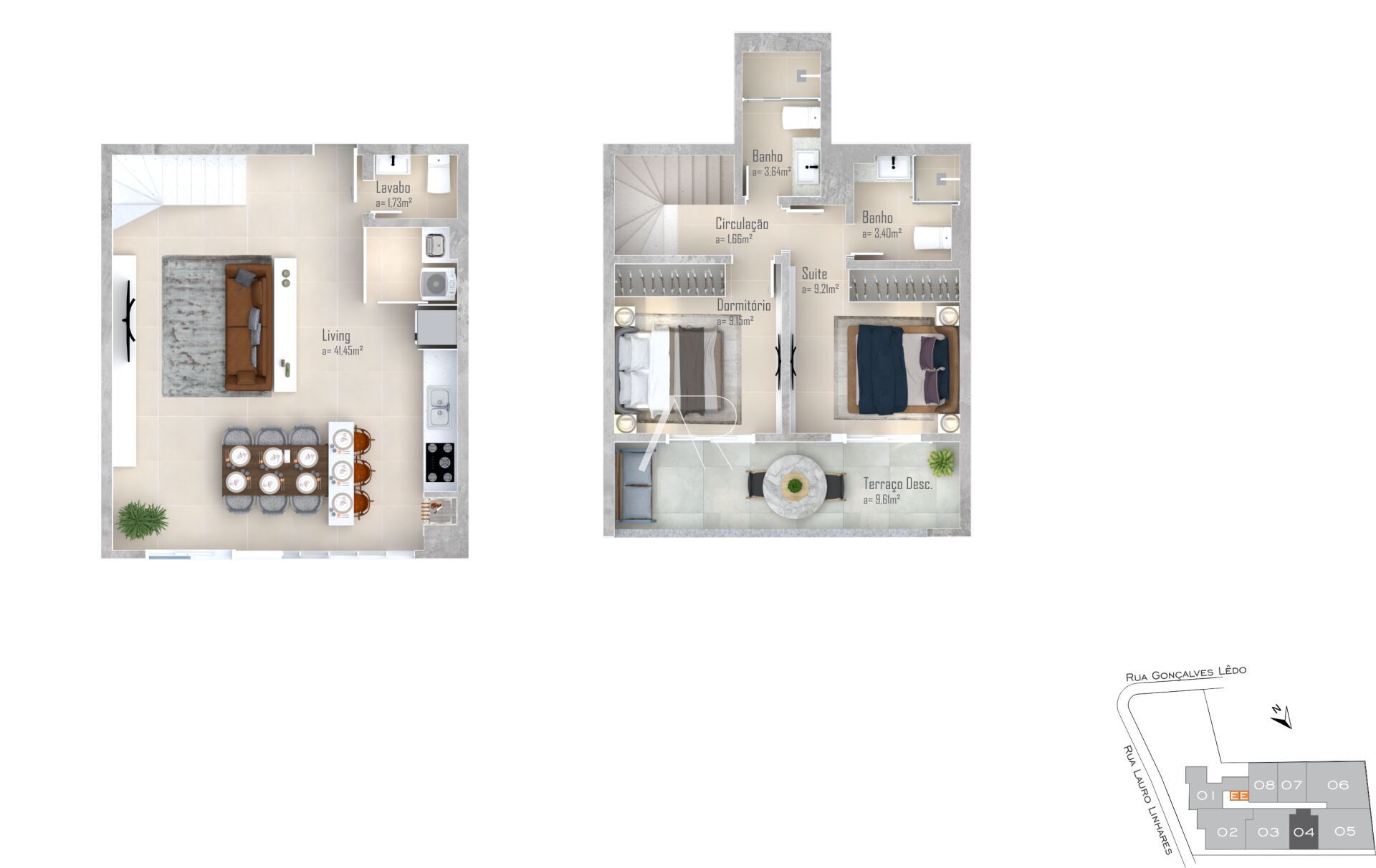 Tipologias dos apartamentos: